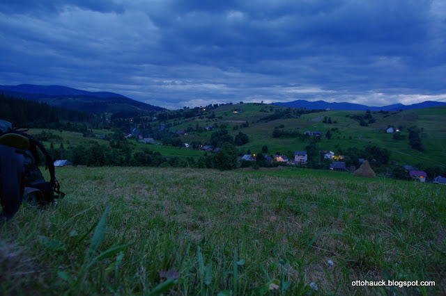In the previous evening I ate something bad! I started to be sick just after midnight. It was sleepless ordeal to wait for the day to come! I got up very early, while the others still were sleeping. I couldn't stay in my sleeping bag no longer. I killed the time taking early morning photographs of the camp and then I was picking up blueberries, which were abundant in the area. They made me to feel much better, so I was able to continue the journey to the top of Popadia and further down to the village of Sinevir.